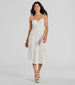 Looking for the perfect summer dress? Look no further than this playful sleeveless midi dress! With its flattering sweetheart neckline with a structured bust and adjustable spaghetti straps, this A-line silhouette dress will have you feeling confident and stylish. The ruffled midi-length hem and floral embroidered eyelet woven fabric add a touch of playfulness to this must-have dress! Complete the look with wedge sandals.