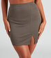 This adorable knit mini skirt will bring the preppy fall vibes to your looks! It features a high-rise waist, a short, curve-hugging fit, a chic side slit, and an all-over jacquard houndstooth print. Style with a corset top, a cropped cardigan, and mules.
