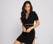 Add some stylish preppy vibes to your look in this trendy mini dress! It features a collared neckline with a partial button-down front, short sleeves, and a mini-length, curve-hugging silhouette. The black sweater knit fabric showcases light brown striped detailing at the waist, a light brown collar and button-down front, and light brown hems at the sleeves. Complete your outfit with chunky sneakers and sleek hoop earrings.