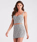 Pretty and posh, create an iconic look with this tweed bustier top! It features a sleeveless sweetheart neckline with a bustier-style bodice, a built-in padded bust, thin tank shoulder straps, and a fitted cropped hem. The plaid pattern on the tweed knit fabric gives it that chic factor. Style with the matching mini skirt!