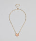 The charm necklace features a trendy paperclip chain with a center heart-shaped rose quartz pendant to add a pretty aura. Style with rhinestone stud earrings.