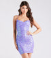 Illuminate the night and radiate a gorgeous iridescent glow in the Quinn formal sequin bodycon mini dress. She features a sleeveless cowl neckline, bungee spaghetti straps that lead to a cross-back strap design, a mini-length hem with a curve-hugging silhouette, and all-over sequin embroidery. Style with metallic platform heels for a fabulous birthday outfit!