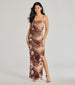 Usher in romance in a maxi dress that features a sleeveless square neckline with spaghetti straps, an abstract floral pattern, ruching throughout to enhance curves, and a high side slit. Complete the look with block heels that will have you ready for your next brunch date!