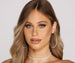 Bring the luxe with a multi-pack that includes two chokers and a pair of hoops. One choker features a single row of rhinestones and the second choker features a two-row rhinestone design. The matching hoops feature rhinestones and an omega back closure. Complete look a formal satin dress and heels.
