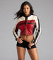Wherever you're headed, arrive in style! This faux leather moto jacket features long sleeves, a mock neckline with snap-button closure, front zipper closure, zippered pockets for keeping your hands warm, a cropped hem, and a trendy contrast striped pattern for added flair. Complete the look in a tee and slit midi skirt for a cute-edgy vibe!