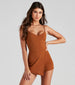 Step out in this crepe skort romper and watch the heads turn! It features a sleeveless, v-neck, spaghetti straps, a high waist seam, and an envelope front design with shorts underneath. Complete the look in bold earrings for a daytime outing.