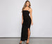 Get a gorgeous look for a romantic date night in this sultry ruched maxi dress. It features spaghetti straps, a square neckline, ruched side detailing, and a maxi length with a high side slit. The knit fabric offers plenty of stretch and provides a curve-hugging fit. Style this dress with a new pair of earrings and strappy heels.
