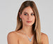 You'll look so royal in this necklace and earring set! They feature a v-collar necklace with rhinestone trim and teardrop gems with a lobster clasp closure. The matching earrings have a duster design with rhinestone trim and a teardrop gem charm with a post-back closure. Complete the look in radiate heels.