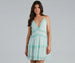 Make a ruffle at the party in this chiffon babydoll dress featuring a sleeveless V-neckline, adjustable spaghetti straps, criss-cross back, flowy silhouette, and a ruffled trim throughout. Composed of a chiffon woven fabric with an inner skirt lining. Perfect for styling with a mini tote bag.