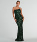 Elevate the night in the Sarah sequin formal dress that brings sultry shine to balls, banquets, and prom! Show off the stunning one-shoulder neckline and adjustable spaghetti strap for a custom fit, while the padded bra cups provide support. The mermaid silhouette and sequin pattern add eye-catching flair, while the floor-length hem creates a dramatic entrance. Complete the look with luxe earrings and block heels.