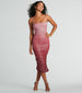 A glitter mesh midi dress you'll look and feel sassy in on dressy occasions! Showcasing a sparkling glitter mesh fabric with a chic ombre effect, you'll capture the attention of the room. Featuring a square neckline, adjustable spaghetti straps for a perfect fit, and side-ruched seams that accentuate your curves along the bodycon silhouette. The side slit and midi-length hem add the perfect finishing touch. Complete the look in clear mules for a seamless style!
