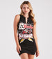 Amp up your bar hopping 'fits with this edgy graphic mini dress! It features a sleeveless crew neckline, a notched V-neck design with safety pin accents, a racecar graphic with various scripts like, 'Champions Racing,' a mini-length hem, and a bodycon silhouette that will hug your curves. Style with a layered necklace set and sneakers.