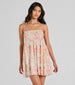 Uncover this dreamy and whimsical garden floral babydoll dress for dressy soirees! Its square neckline, adjustable spaghetti straps, and hidden side pockets make it perfect for any occasion. The babydoll silhouette and short-length hem on a rose floral printed chiffon fabric with a knit lining add a touch of charm. Complete the look with earrings and platform block heels.