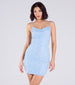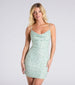 This sensuous mesh cowl mini dress is sure to turn heads with its glamorous faux pearl and colored rhinestone embellishments. Featuring an adjustable spaghetti strap design, bodycon silhouette, and a mini-length hem, this sensational dress is perfect for your next night out! Complete the look in strappy rhinestone heels.