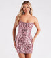 Keep it sultry and glamorous for dances or parties in the Serene formal sequin bodycon mini dress! She features a sleeveless square neckline, a built-in padded bust that eliminates the need for a bra, adjustable spaghetti straps, an open back with a lace-up strappy design for a customized fit, a mini-length hem, and a bodycon silhouette that will hug your natural curves. The lined mesh fabric features glitzy sequin embroidery in a stunning scroll pattern to catch everyone's eye. Style with metallic heels.