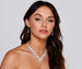 Get ready to shimmer and glow with a collar set that brings the dazzle to your look! The set includes a V-shaped collar with a triple-row rhinestone design, gemstones, scalloped-shaped design, and teardrop-shaped gemstones. The matching earrings feature a linear rhinestone design and a teardrop-shaped gemstone. Complete look with a formal velvet dress.
