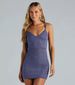 Look stunning in this glitter mini-dress! Featuring a classic sleeveless v-neck, spaghetti straps, and a flattering bodycon silhouette and lace-up back for the perfect fit. Complete the look in chunky platform heels.