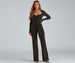Celebrations call for glam outfits. Glow up in a jumpsuit that features a wired sweetheart neckline, long sleeves, tie-waist belt, and a straight leg. The jumpsuit is composed of a lined lurex knit fabric that offers a form hugging fit with a moderate stretch. Complete outfit with a sphere clutch and heels.
