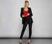 The real star of the show is these sequin leggings featured in a high-waist and tapered, skinny leg fit. Composed of a lined-knit fabric with a moderate stretch. Style with the matching blazer.
