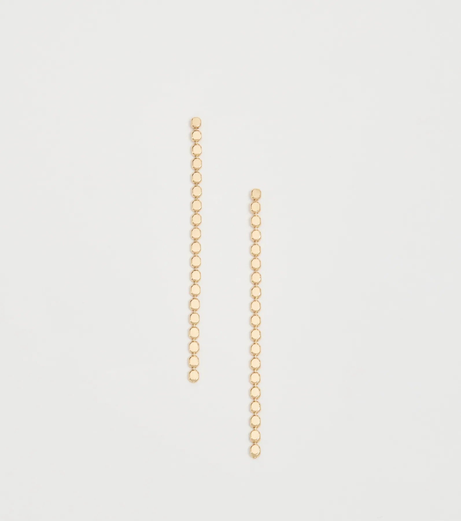 You'll love the simple glam vibe these long chain earrings give you! They feature a dainty single-row mini disc chain design.