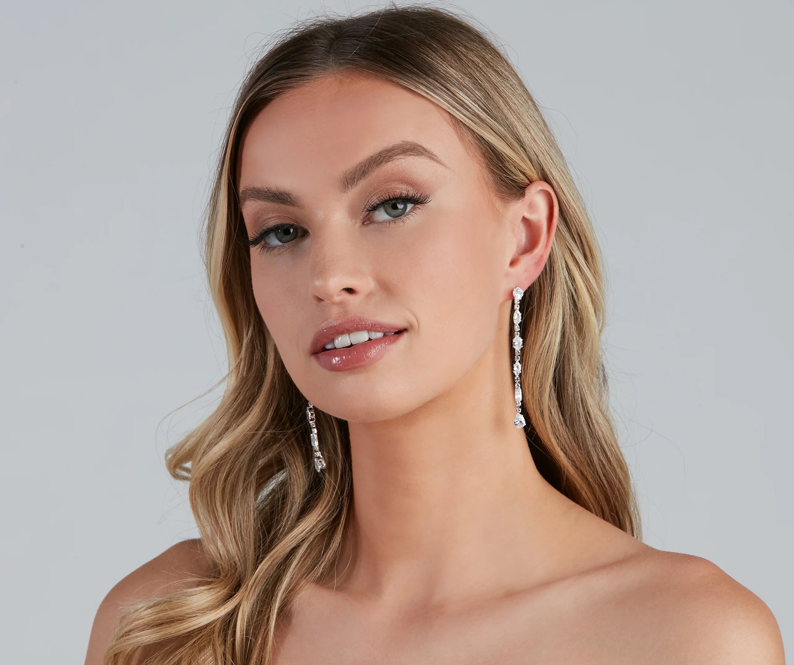 Dress up your look in these chic earrings featuring cubic zirconia insets on a linear design with a post-back closure. Complete the look in a statement ring.