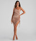 Keep it sophisticated and luxe with a formal dress that elevates your formal evening. Sinéad features a one-shoulder neckline with a single spaghetti strap, a ruched body, and an asymmetrical hem with an adjustable drawstring. The dress is composed of a smooth knit fabric that provides a form-hugging fit with a moderate stretch. Complete look with heels and door knocker earrings.