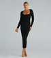 The perfect maxi dress for looking sultry on casual outings! The long dress features fitted long sleeves, a square neckline, a flattering bodycon silhouette, and a fitted maxI-length hem on smooth modal knit fabric with a mesh lining. Complete the look with simple hoop earrings and a choker.