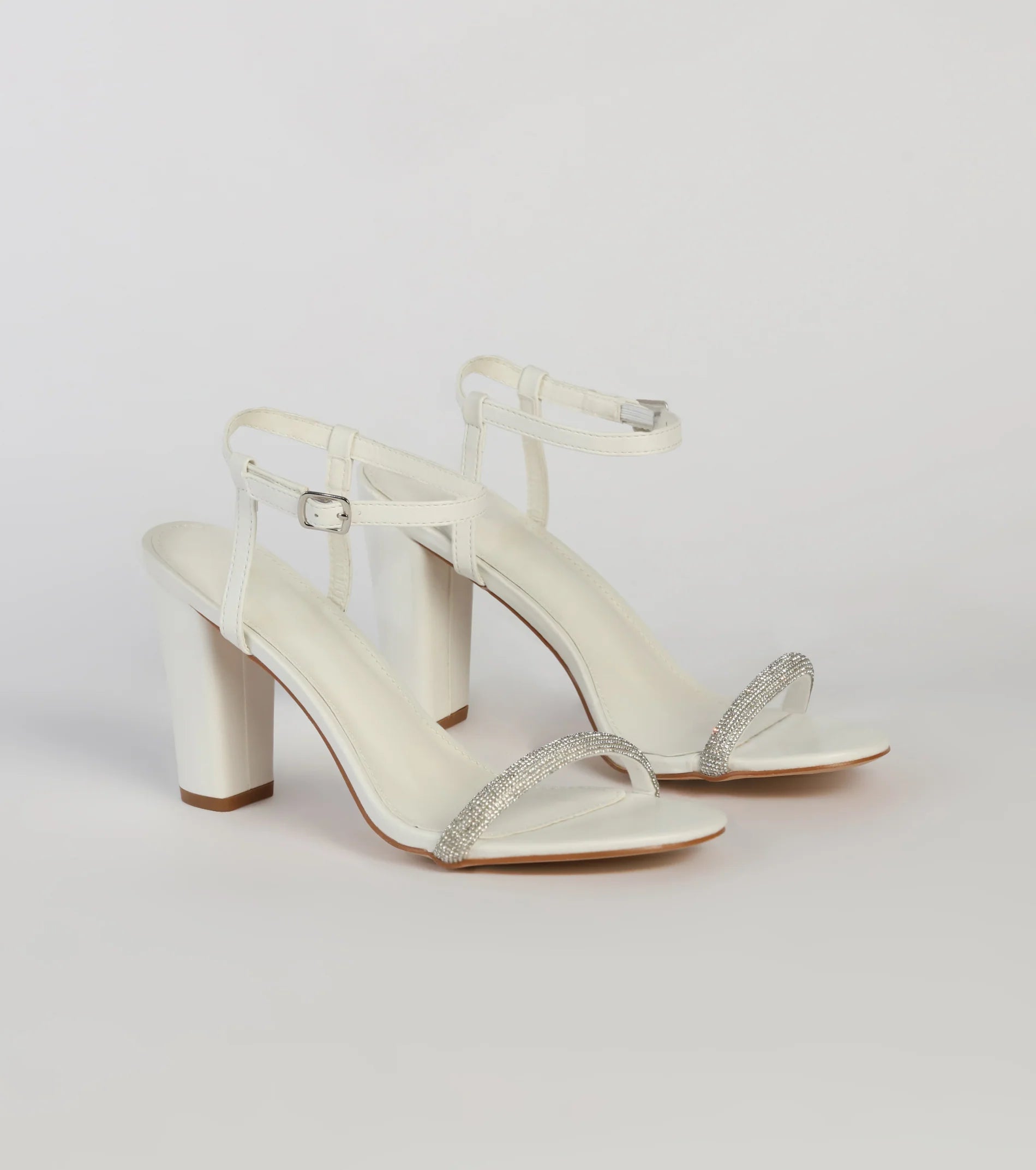 Step into these pretty block heels for dressy or formal occasions! These stunning shoes feature a square toe, a sparkly rhinestone-embellished toe strap, and a comfortable block heel. An adjustable ankle strap with a buckle closure ensures the perfect fit, while sleek faux leather material offers an elevated style. Complete the look with a sparkly clutch.