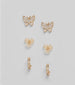 The perfect three-pack earring set to adorn all of your outfits for everything on the calendar! This set has one pair of rhinestone embellished butterflies, one pair of flowers, and one pair of rhinestone trim hoop earrings each with post-back closures. Complete the look with dressy heels.