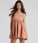 The perfect linen babydoll dress for all of your social occasions is here! Featuring a sleeveless square neckline, adjustable spaghetti straps, a fitted bust, and a flared skater silhouette on a short-length hem. Complete the look in cute sandals and a straw bag.