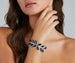 Sophisticated style at its finest! This bracelet features a double row of leaf marquise halo-shaped stones with rhinestone trim and a lobster clasp closure. Complete the look in a long satin dress.