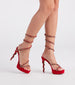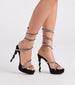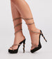 These eye-catching stiletto heels will add a spark of glamour to your night-out look! They feature an open almond toe with dual asymmetric straps, a platform sole, a tall stiletto heel, and a spiral strap design that starts at the heel and wraps around the leg. The straps feature mini rhinestone embellishments for a stunning shine. Style with a sleek faux leather clutch.