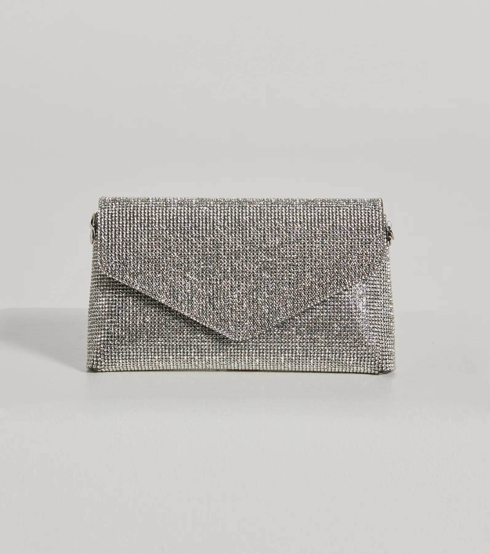 The outfit options are endless with this sparkling rhinestone crossbody purse! This purse features a front flap with a snap-button closure, perfect for securing your essentials, while the rhinestone-embellished exterior keeps your look glamorous.