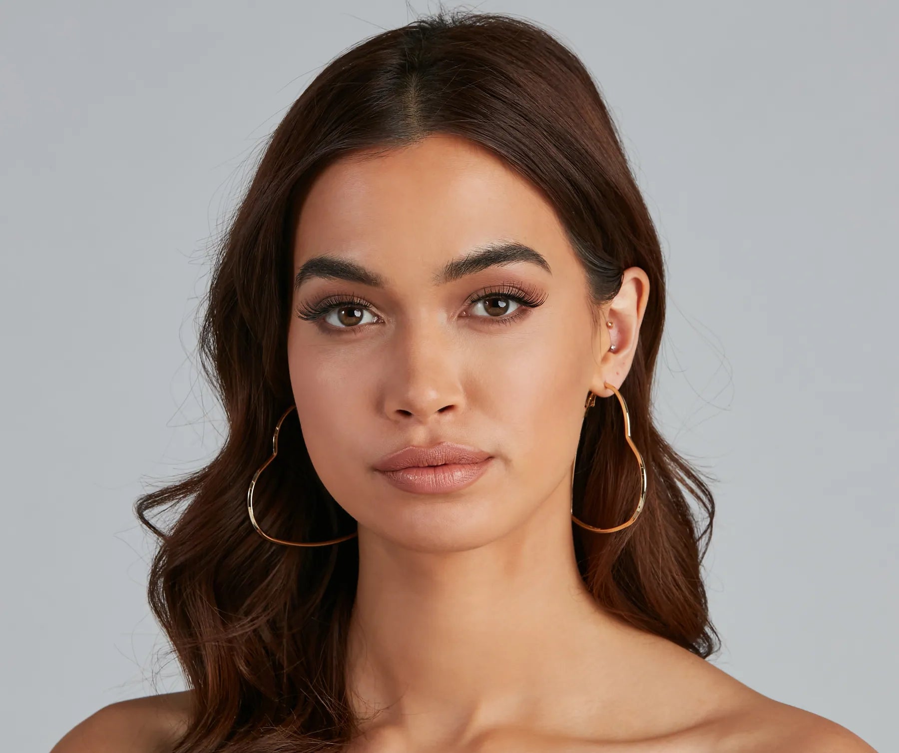 Show your love for the sparkle in this six-pack earrings set! It features rhinestone hoops, heart-shaped hoops, solid hoops, and three various styles of huggies. Complete the look in a cute long sleeve top.