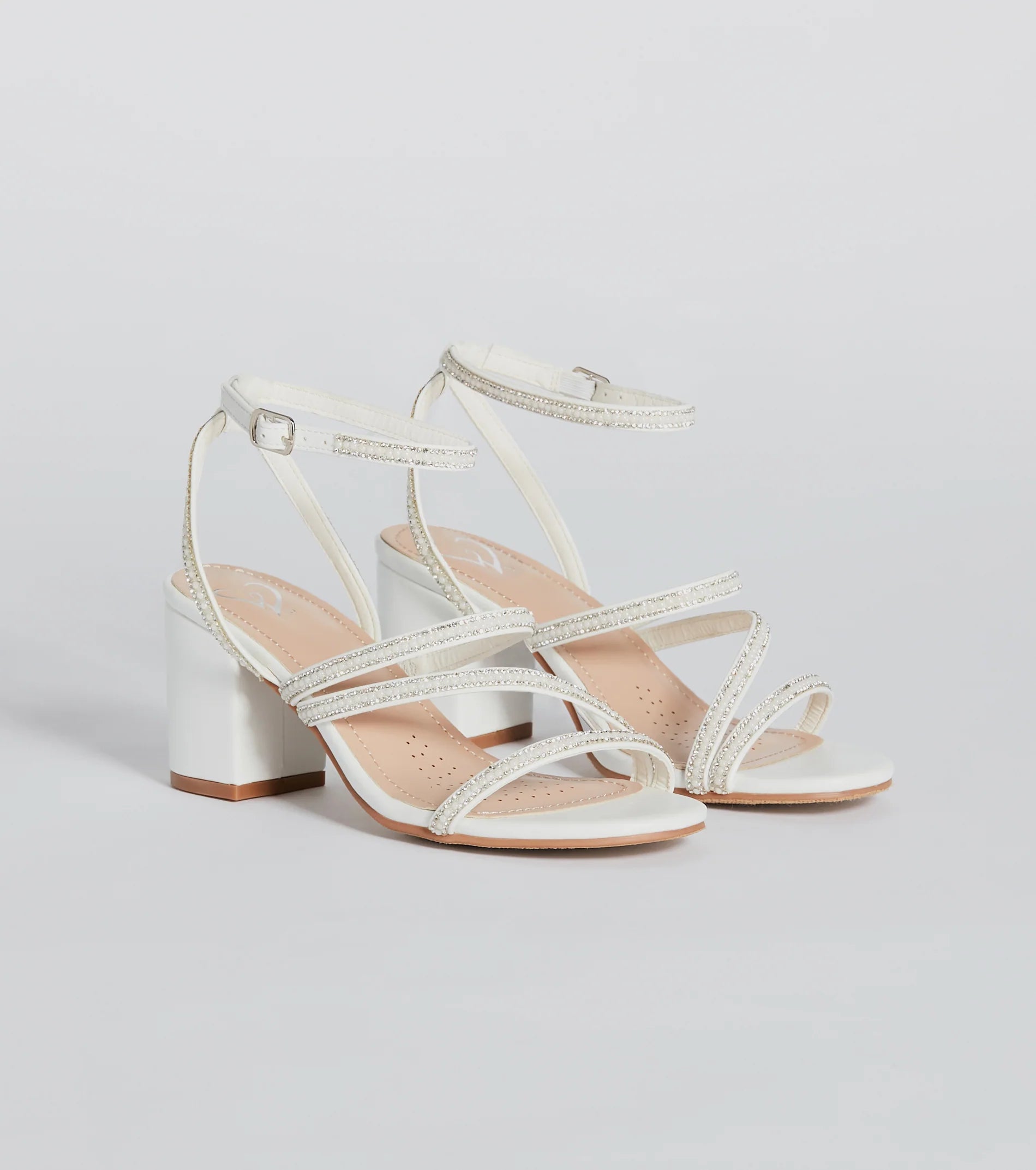 Let your feet shine on in these faux leather block heels with fabulosity! They feature an almond toe, strappy design with mini rhinestone trim and faux pearl embellishments that will have you sparkling with flair, and a short block heel and adjustable ankle strap with buckle closure. Complete the look with a glam clutch purse for a dressy date or party!