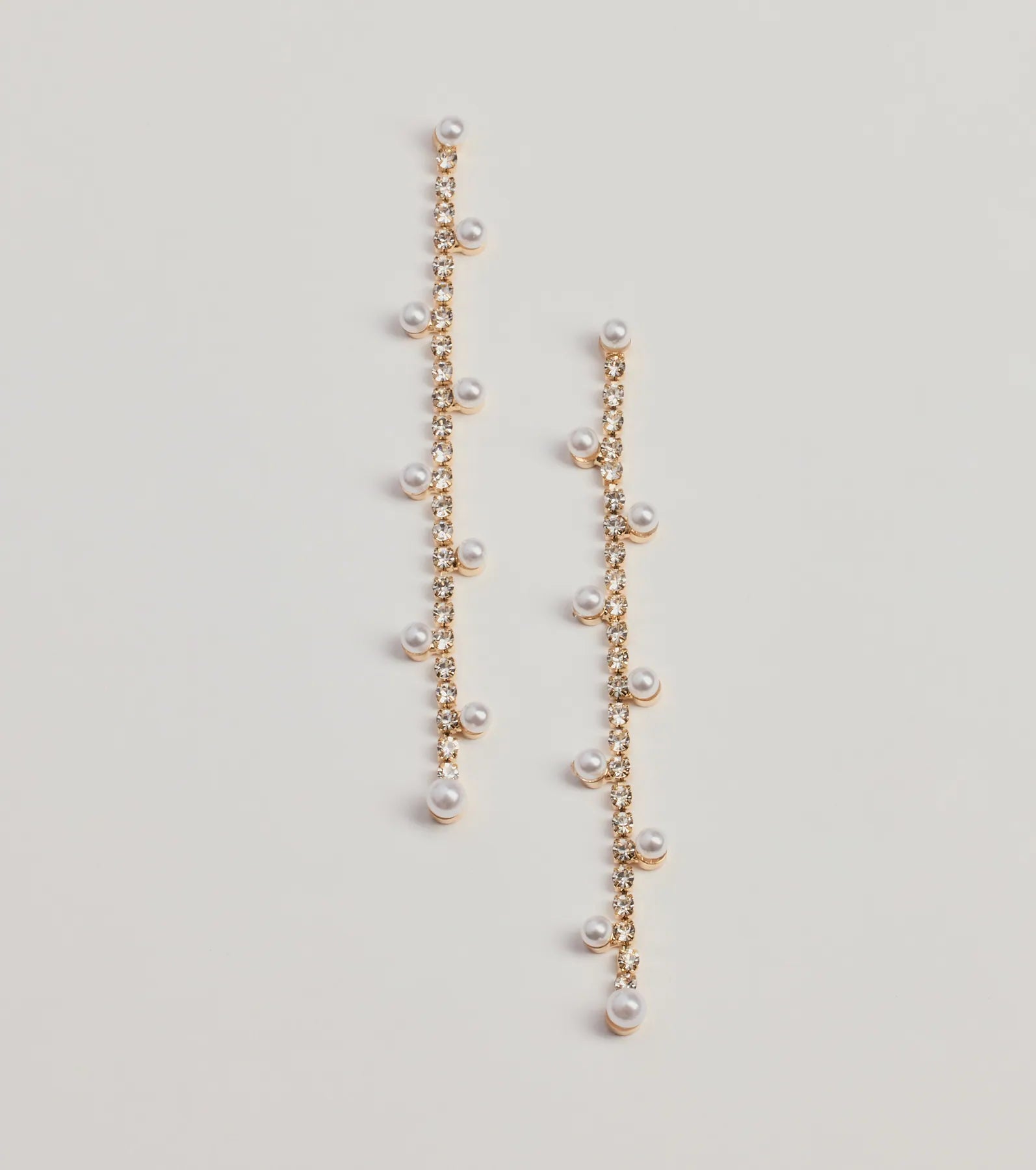 Sparkling Elegance Faux Pearl And Rhinestone Linear Earrings