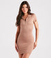 Get a sporty-chic style with this adorable knit mini dress. It features a collared V-neckline with a zip-front, short sleeves, and a mini-length, curve-hugging silhouette. The lined knit fabric offers plenty of stretch. Complete the look with trendy mules.