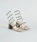 Spring into these block heels designed with spiral rhinestone straps that effortlessly wrap around your ankle for a statement look! They feature a sleek square toe, block heel, and satin material. Style with a sphere clutch.