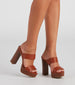 How can high can you stack your style up? These platform mules are major game-changer they feature an almond toe, stacked platform sole, and dual straps on faux leather material. Complete the look in a breezy jumpsuit for a weekend getaway.