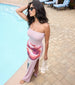 Perfect for any occasion, this floral maxi dress will make a statement! The strapless neckline and maxi hem create a flattering silhouette, while the vibrant floral print and side slit add a touch of playful elegance.