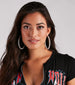 Give your outfit the perfect statement with these earrings! They feature a large hoop with a sparkling twisted rhinestone-embellished design. Includes an omega closure. Complete the look in a cute and edgy graphic crop top and jeans for a casual movie date!