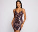 Bring the glamour with a dress that illuminates your evening. The dress features a plunging sleeveless V-neckline, adjustable spaghetti straps, a sequin print, and a mini length silhouette. The dress is composed of mesh fabric that offers a form hugging fit with a slight stretch. Complete look with a dainty rhinestone bracelet and chrome heels.