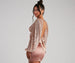 Step up the glam with this gorgeous embroidered crop top! It features a low V-neckline, long bishop sleeves, a horizontal back bar strap, an open back design with a satin lower tie detail, and a cropped, form-hugging fit. Showcase a stunning sparkle with the all-over sequin embroidery. Style this top with a satin mini skirt and clear heels.