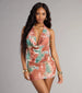 You'll make them stop and stare in this sultry bodycon mini dress with a trendy abstract print pattern. The plunging cowl neck and backless design are alluring details to turn heads.