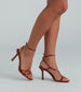 Strut in confidence slaying your day in these faux leather stiletto heels! They feature a sleek open square toe, thin toe straps, and an asymmetrical foot strap that goes around the adjustable ankle strap with buckle closure. Complete the look with a mini handbag for day or night plans!