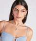 Entrance them all with stunning glamour when you accessorize with this luxe rhinestone jewelry set. It features a collar necklace with mini rhinestone embellishments leading to a center large teardrop-shaped rhinestone accent. The short drop earrings feature a matching teardrop rhinestone design. Complete the look with a box clutch.
