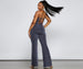 Slay like the style icon you are with a jumpsuit that takes your look to the next level. The jumpsuit features a sleeveless square neckline, a lace-up back, and a slim fit bodice that leads to a straight leg with a flared hem. The jumpsuit is composed of a smooth knit fabric with a form-hugging fit and moderate stretch. Complete look with heels and a clutch.