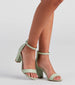 Step out in style with block heels that elevate your look! The heels feature a closed zippered back, a wrap-around ankle strap, an open almond toe with strap over the toe, and a block heel. The heels are composed of a faux leather material. Complete look with a bodysuit and mini skirt.