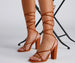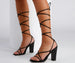 Hey babe, showcase your chic style with these faux leather heels! They feature an open square toe, a thin strappy lace-up design, and a block heel. Pair these shoes with a casual dress and a cute blazer.