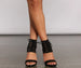 Lace up in these chic block heels that make each step a stylish one! The heels feature a lace-up cuff detail at the ankle, a zippered back, an open almond toe with a strap over the toe, and a block heel. The heels are composed of a faux suede material. Complete look with a bustier and high waist jeans.